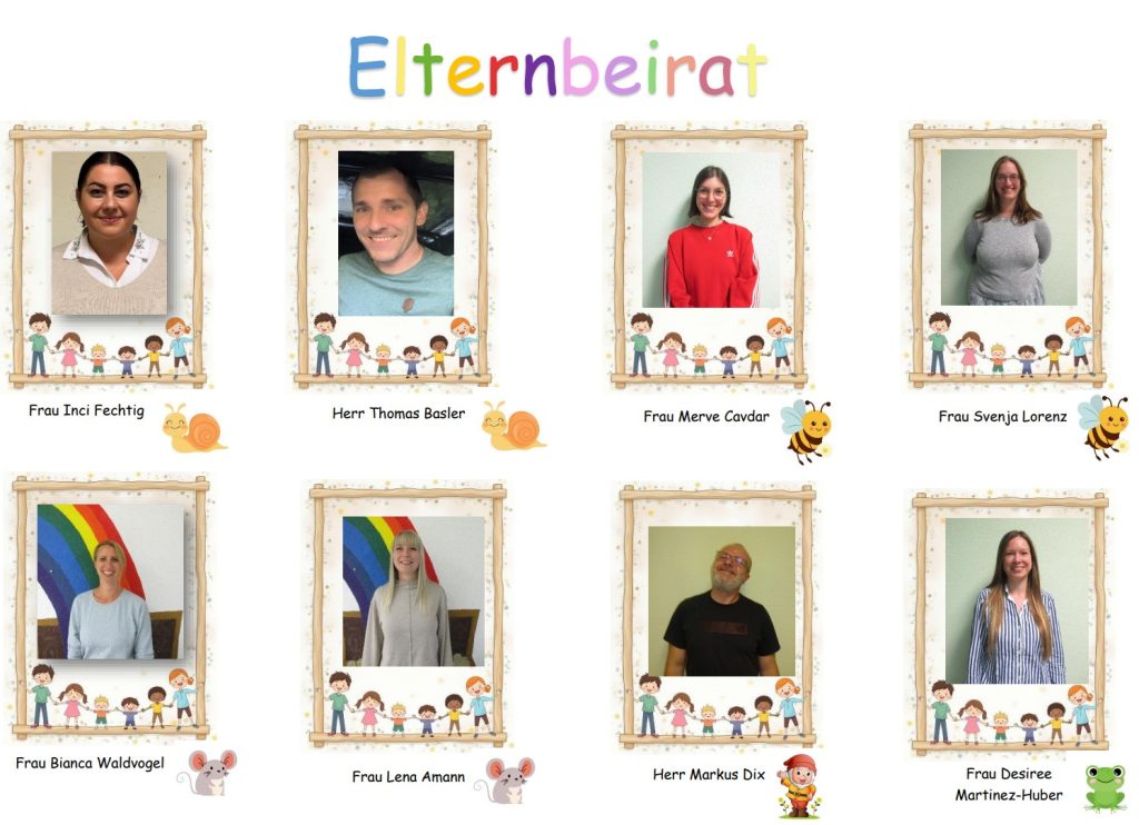 Der Elternbeirat im Kindergarten „Regenbogen“ wird jährlich, jeweils am ersten Elternabend eines Kindergartenjahres, innerhalb der 4 verschiedenen Kindergruppen, gewählt. Pro Gruppe werden zwei Elternbeiräte gewählt. Diese wiederum wählen unter sich den oder die Vorsitzende /-n. Für das Kindergartenjahr 2025 / 2026 amtieren als Elternbeiräte.